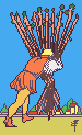 O outro lado do caminho é preocupante. Indica apenas mais trabalho. Mais dificuldade, mais opressão. O Dez de Paus é uma carta do trabalhador, mas no lado negativo. Significa mais do que podemos suportar. O que significa? Problemas na Previdência? Mais taxas vindas do império americano? Um novo presidente, que trará mais encargos para a população? (lembre-se do que eu disse sobre a tal da liberdade.) Alguma tragéria em algum lugar, que nos obrigará a reconstruir?